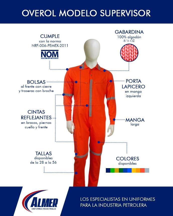 Fabricado con 100% algodón, ideal para el uso diario en campos petroleros y refinerías ya que cumple con la norma NRF-006-PEMEX-2011